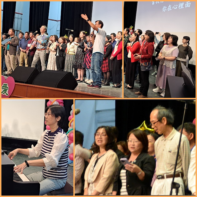 | 打開手機的燈,跟著一起揮動!一起唱! 有巨星演唱會的效果! 下左:許民陽老師站在前排喔! |